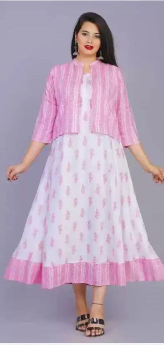 The fusion of a classic gown with a contemporary jacket creates a silhouette that is both graceful and trendy. Our latest collection of Long Gowns with Jacket is crafted for the modern woman who values heritage prints but desires a fresh, Indo-western twist. This set offers a complete look that is easy to wear and impossible to ignore.